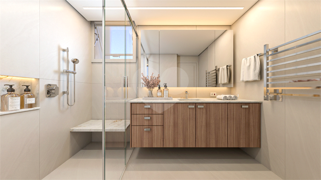 Um apartamento que traduz um desejo raro em São Paulo: viver em um apartamento com cara de casa, com amplitude, luz e verde em um andar alto. Com 350m²*, o projeto tem como grande protagonista uma varanda generosa ? um verdadeiro refúgio suspenso que funciona como extensão natural da área social. Por estar em um andar alto, a vista se abre ampla e luminosa, trazendo ventilação constante e uma atmosfera leve ao longo do dia. O espaço gourmet com churrasqueira convida a encontros longos, almoços de domingo e noites com amigos, enquanto o paisagismo nas laterais cria um enquadramento verde que entra para dentro do apartamento. O resultado é uma sensação de uma verdadeira "casa suspensa" ? um lar que acolhe, sem abrir mão da sofisticação. A planta equilibra integração e privacidade. Na área social, living amplo, sala de jantar, copa, cozinha e um cômodo extra para home office ou sala de TV íntima. Na área íntima, três suítes amplas, com destaque para a suíte master, muito ampla, que oferece dois closets e dois banheiros ? trazendo muito conforto ao casal. A reforma foi pensada em detalhes que fazem diferença no dia a dia: portas blindadas, tanto na área social quanto na de serviço, janelas novas em todo o apartamento e janelas antirruído nos dormitórios, garantindo silêncio e tranquilidade à família. As bancadas em mármore branco Paraná iluminam cozinha, copa e área gourmet, enquanto o lavabo ganha personalidade com quartzito Deep Blue. No living, um painel em lâmina de madeira natural carvalho europeu adiciona textura e aconchego para todo o ambiente. O apartamento vem pronto para morar: ar-condicionado cassete instalado em todos os ambientes, dois aparelhos de aquecimento a gás, cozinha completa com cooktop, coifa, micro-ondas, forno elétrico e gaveta aquecida TECNO. No gourmet, a churrasqueira conta com coifa e equipamentos EVOL. Uma nova geração de apartamentos Made by Casa Unique. São 3 vagas de garagem, um depósito privativo de aprox. 8 m² de área útil e edifício com gerador para áreas comuns, academia, playground, jardim, salão de festas, vagas para visitantes interna. Entregue reformado, une aconchego e sofisticação em um dos endereços mais desejados dos Jardins. * São 350m², sendo aprox. 342m² de área útil de apartamento e 8m² de depósito privativo com chave na garagem